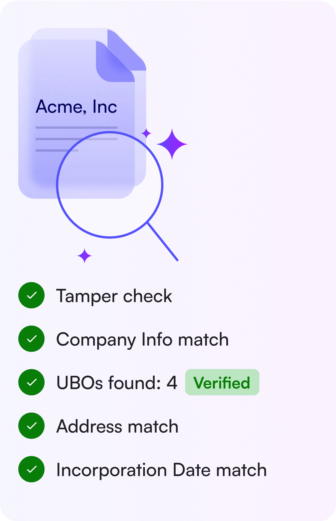 Streamline your compliance process with rapid KYC checks of UBOs, completed in under 30 seconds.