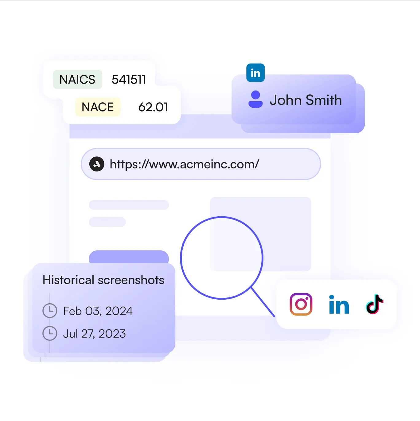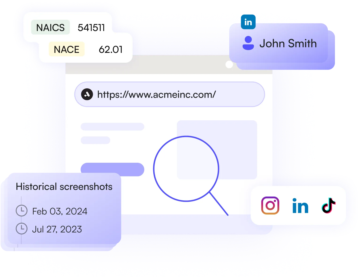Quickly identify a company's social media presence and gather valuable insights from links and reviews in seconds.